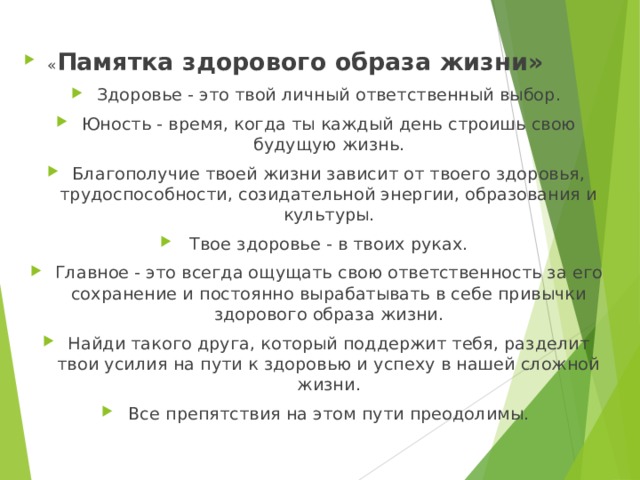 Памятка здорового образа жизни