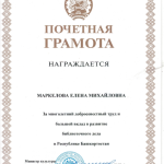 Благодарственное письмо от ЦБС г.Бирска